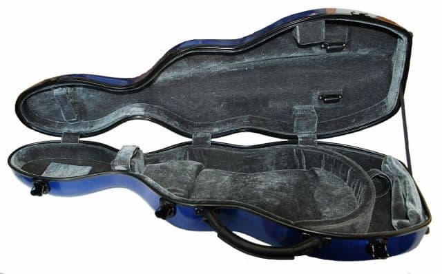 Looks like a tiny cello case! Weighing just under 2.1Kgs this funky violin case has two bow holders, a loop for holding the shoulder rest and a zip-up accessory pocket. The three lockable catches are simple to use and the case will stand upright or on its' side. Two shoulder straps can be used in a variety of positions. Fibreglass outer with velour interior.