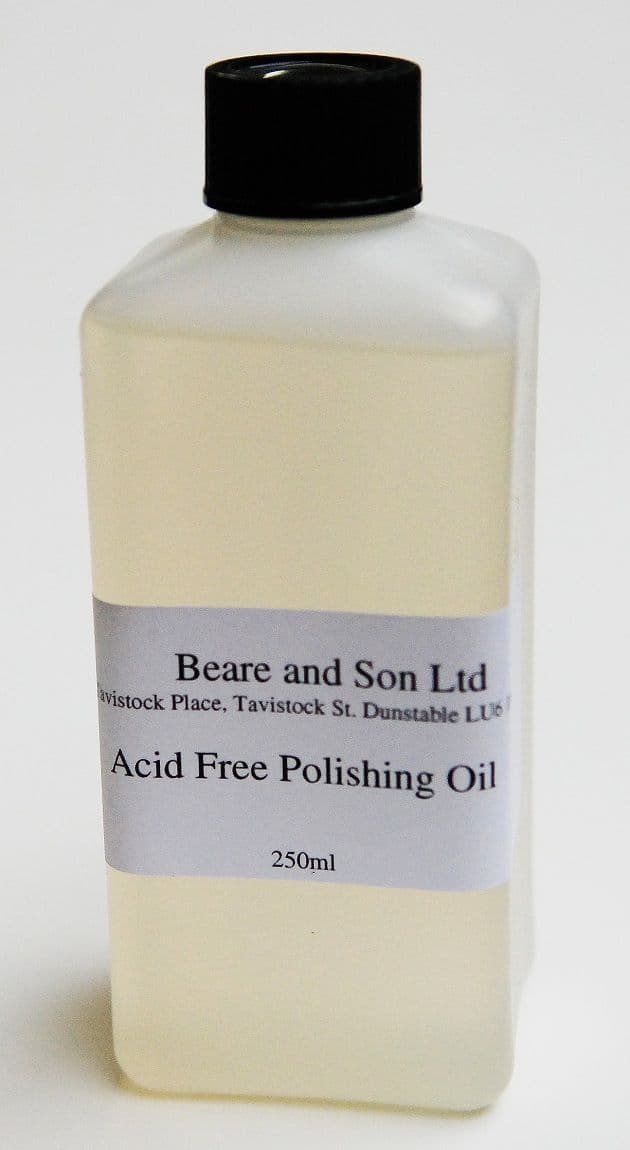 An acid free polishing oil ideal for use with Tripoli powder or French chalk