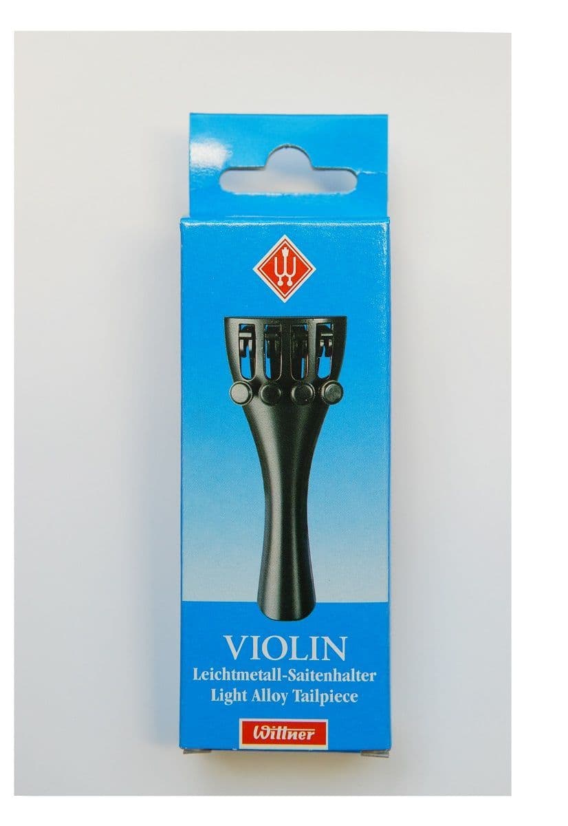 Wittner alloy fine tuning violin tailpiece with 4 built-in string adjusters.